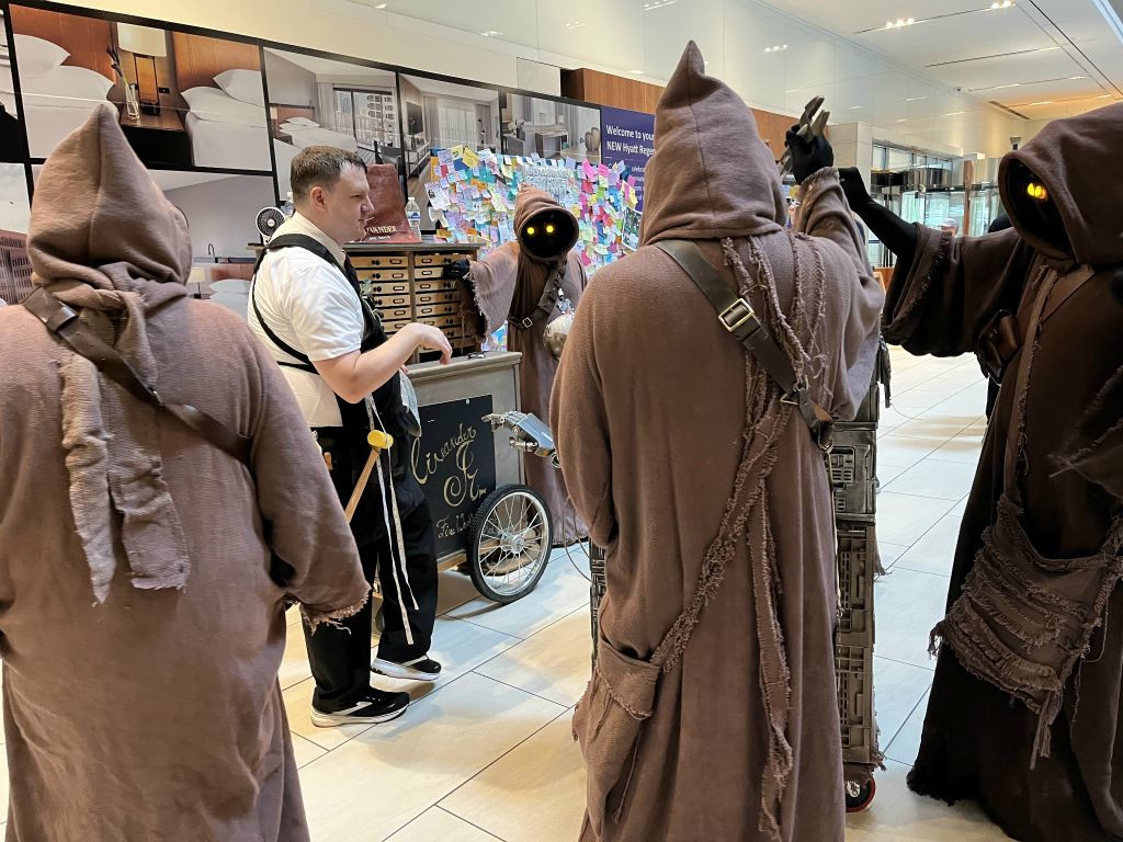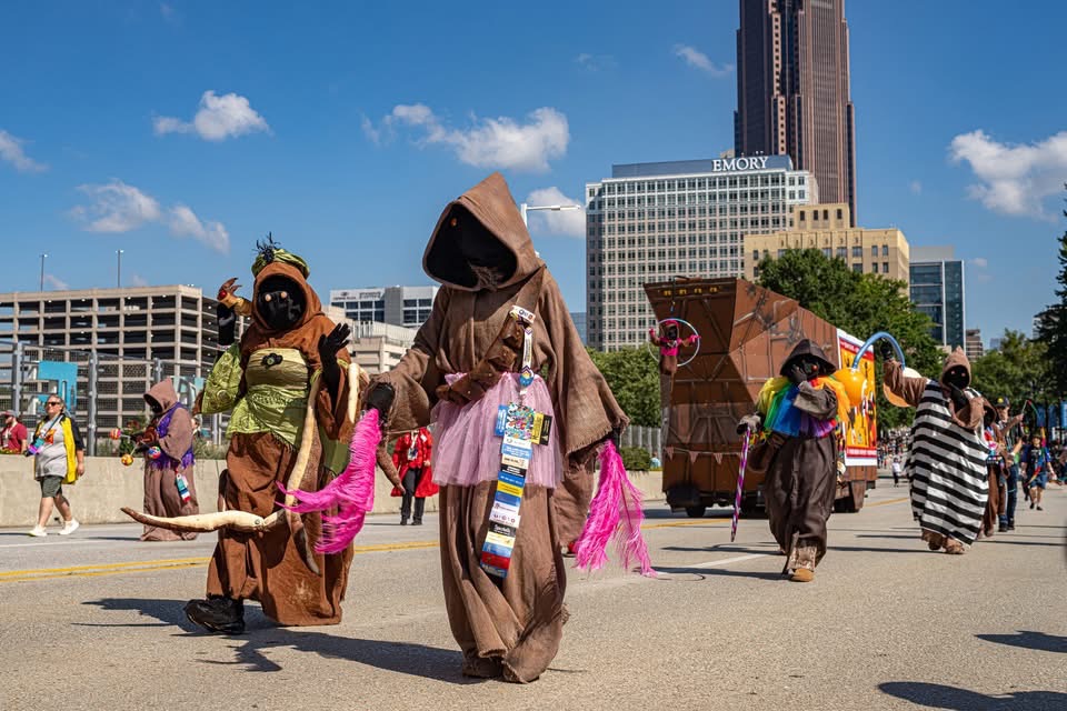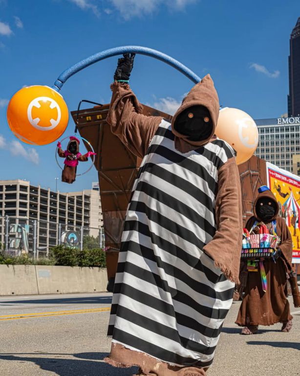 DragonCon 2025 featured the Greatest Show on Tatooine — the Jawa Circus! Our Tusken Ringmaster led animal trainers, tauntaun riders, clowns and magicians! The parade featured the Bearded Jawa, the Strong Jawa, Blastini the Jawa Cannonball, and many more!